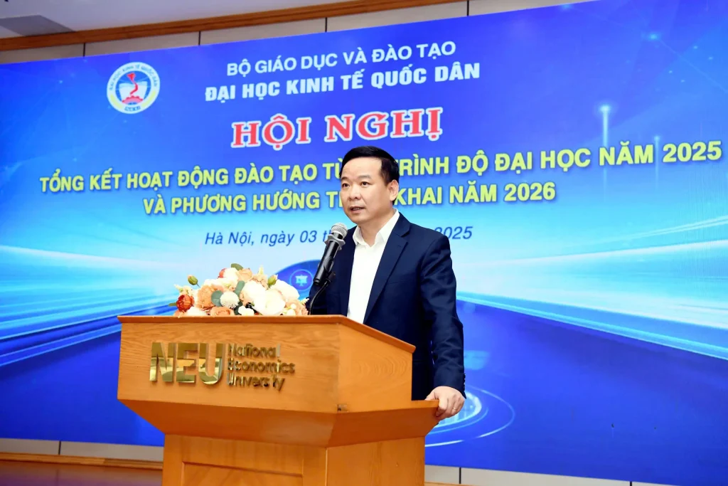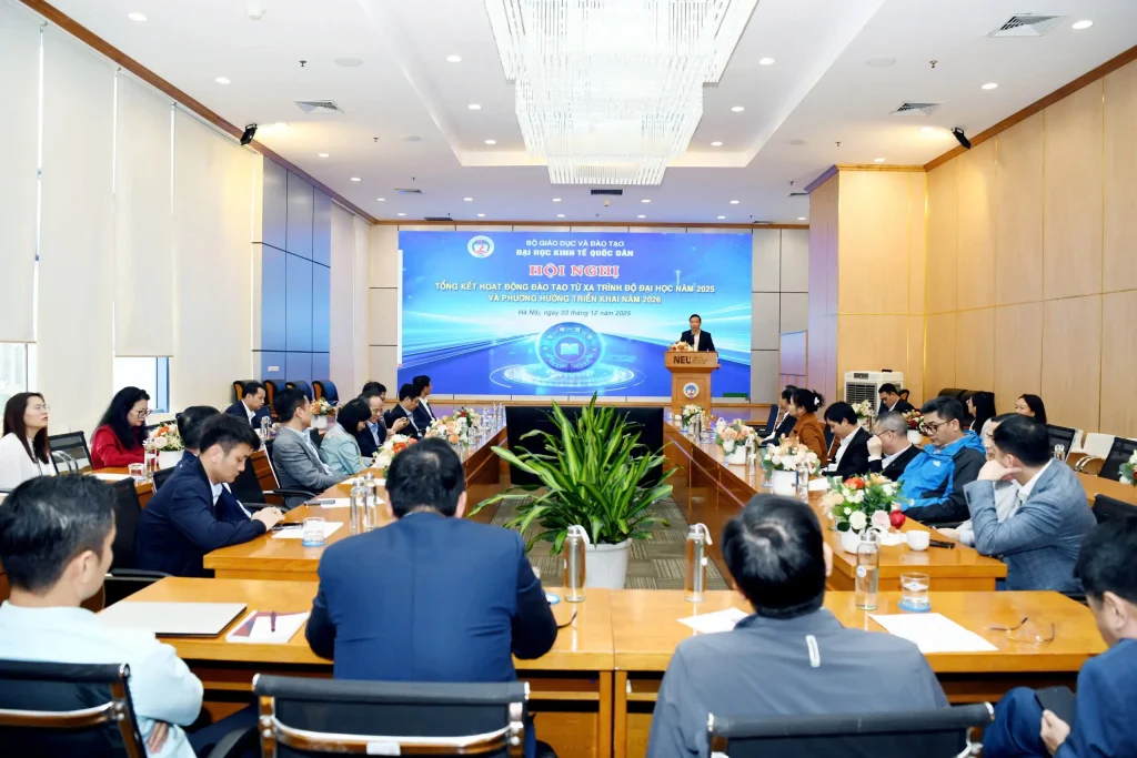 Ngày 03/12/2025, Đại học Kinh tế Quốc dân tổ chức Hội nghị Tổng kết hoạt động Đào tạo từ xa năm 2025 và phương hướng triển khai năm 2026, qua đó nhằm giá toàn diện những kết quả đã đạt được trong một năm nhiều đổi mới và dấu ấn của Chương trình Đào tạo từ xa NEU E-Learning.