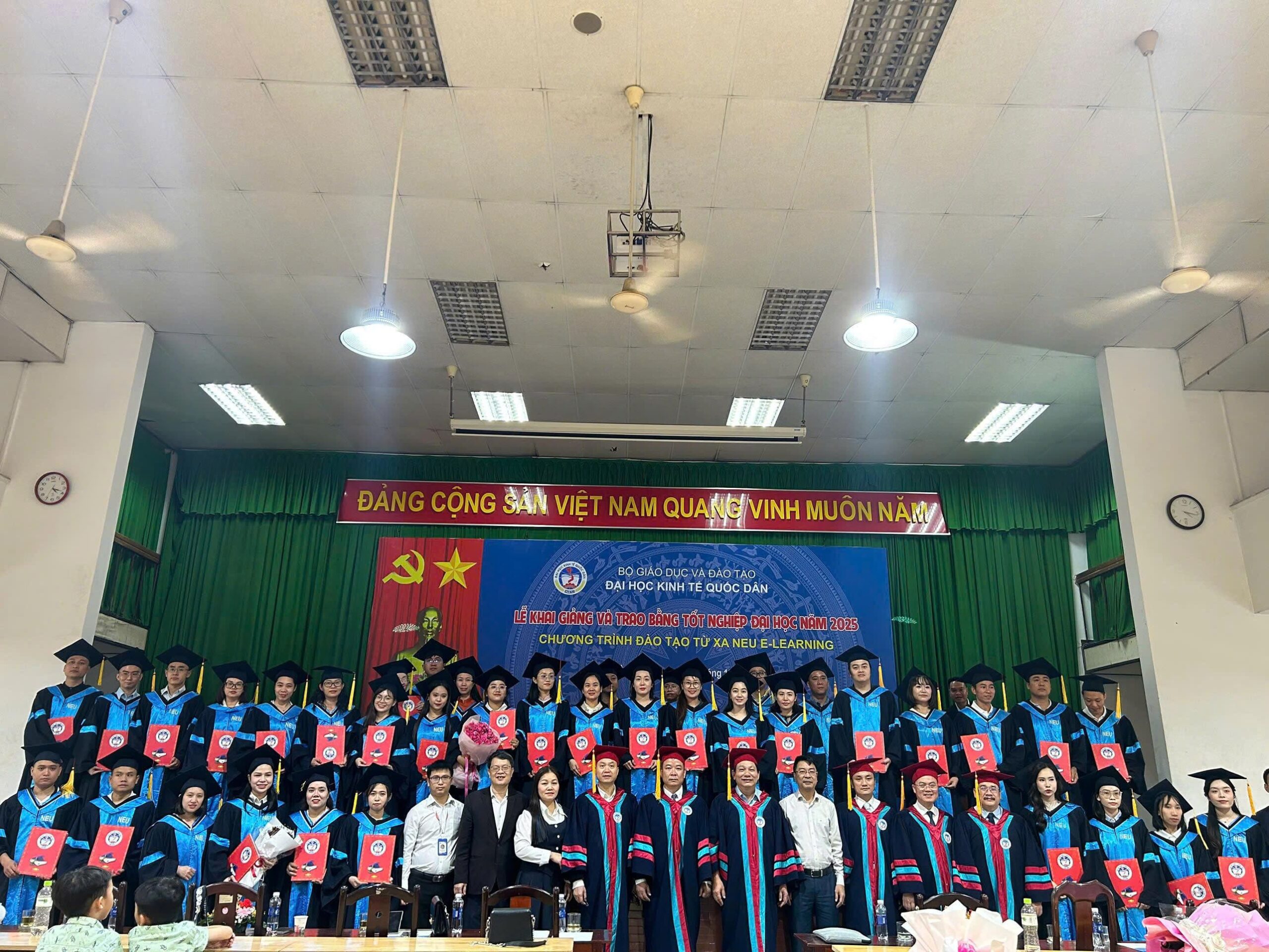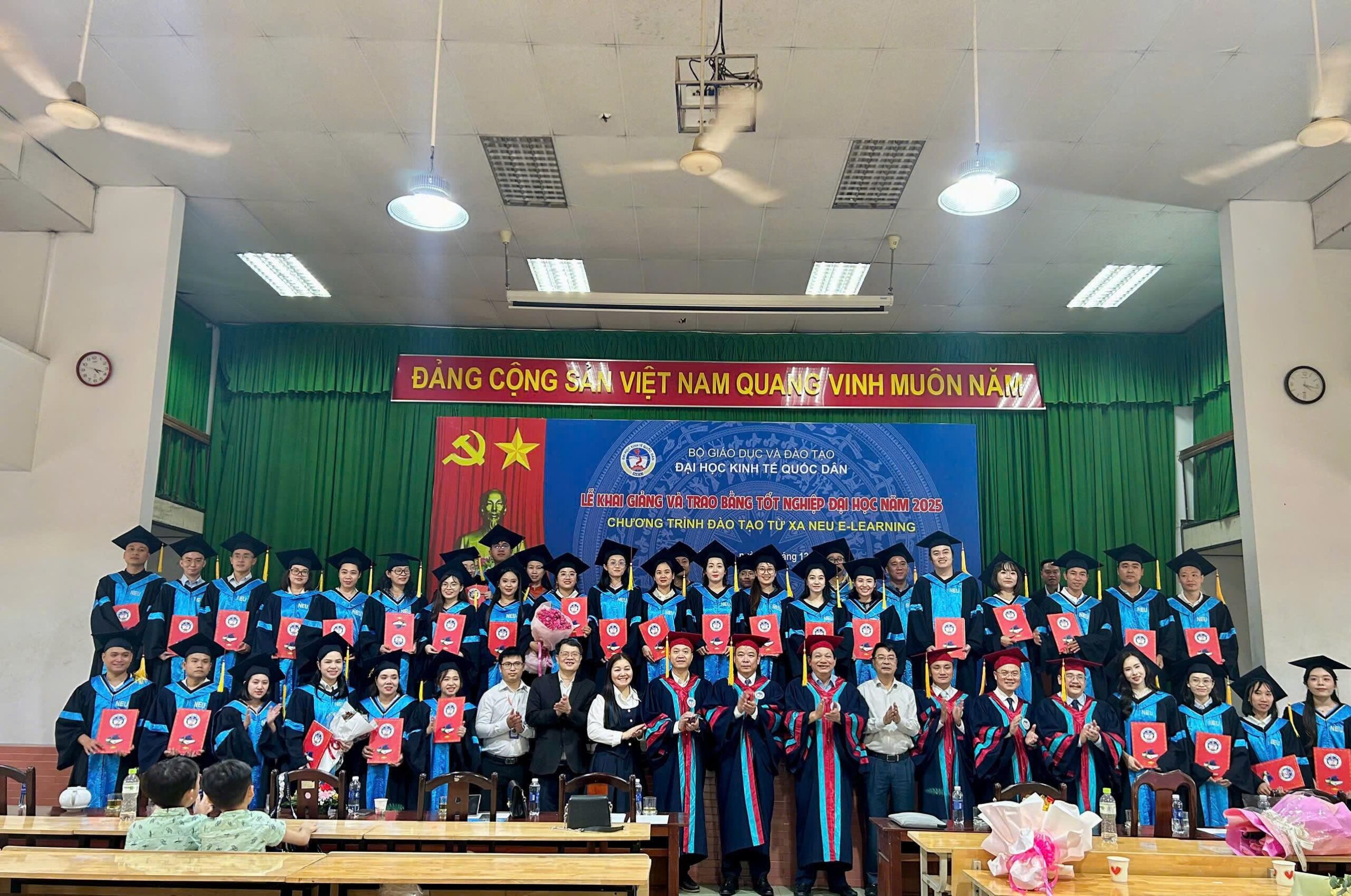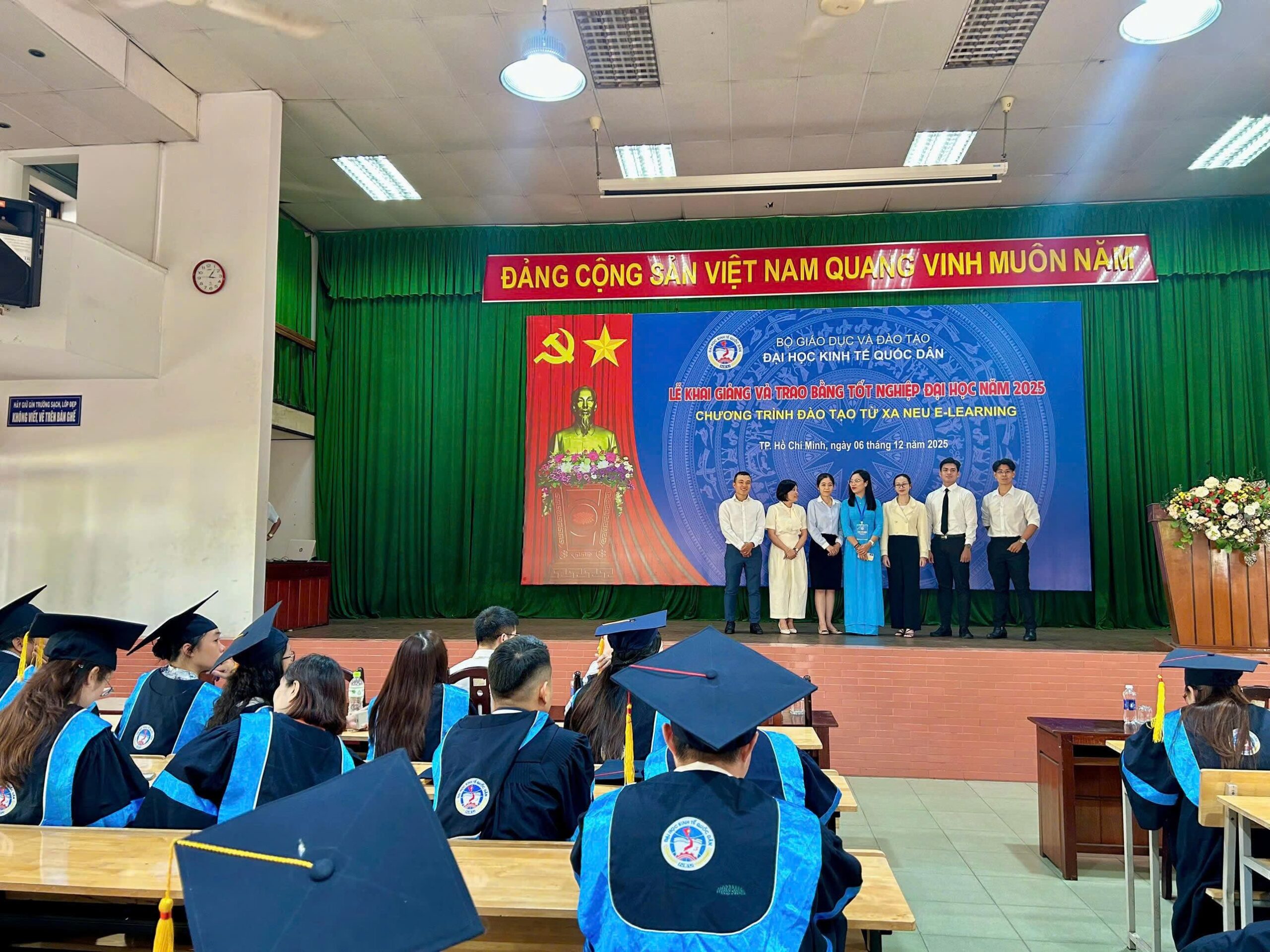 Ngày 06/12/2025, hệ đào tạo trực tuyến NEU E-Learning của Đại học Kinh tế Quốc dân đã tổ chức Lễ Khai giảng dành cho tân sinh viên và Lễ Bế giảng – Trao bằng tốt nghiệp cho học viên hoàn thành chương trình đào tạo tại TP.HCM. Đây là một sự kiện mang tính biểu tượng, đánh dấu bước khởi đầu cho những người mới bước vào hành trình đại học trực tuyến và là khoảnh khắc kết thúc đầy tự hào của những học viên đã hoàn thành mục tiêu học tập của mình.