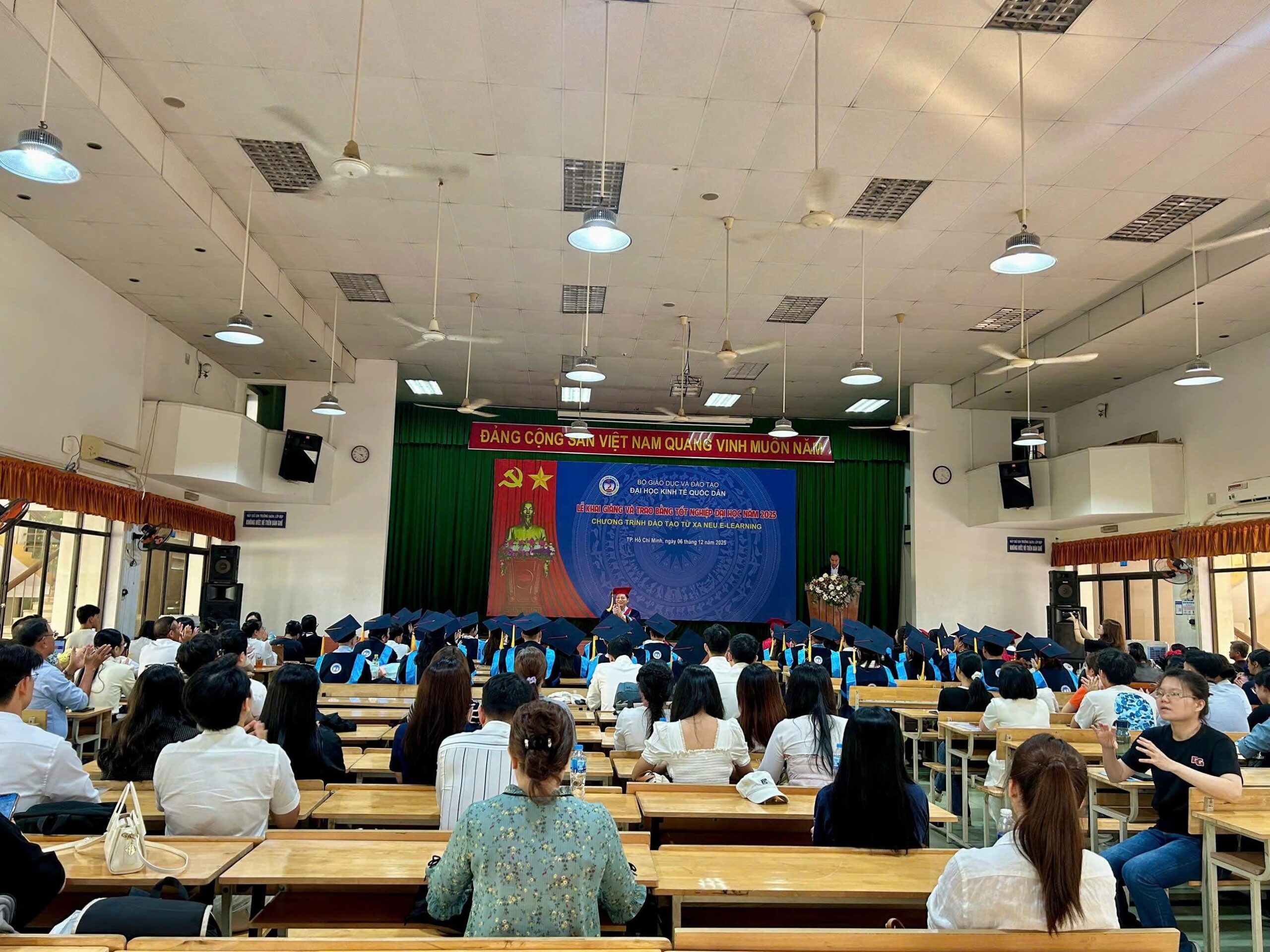 Buổi lễ diễn ra trong bầu không khí trang trọng và ấm áp, quy tụ đông đảo học viên đến từ nhiều tỉnh thành phía Nam. Tân sinh viên có cơ hội chính thức trở thành một phần của NEU E-Learning, mang theo sự háo hức và niềm kỳ vọng vào chương trình đào tạo trực tuyến chất lượng cao. Trong khi đó, các tân cử nhân lại trải qua những giây phút xúc động khi nhận tấm bằng tốt nghiệp – thành quả của sự kiên trì vượt qua áp lực công việc, gia đình và các khó khăn trong cuộc sống.
