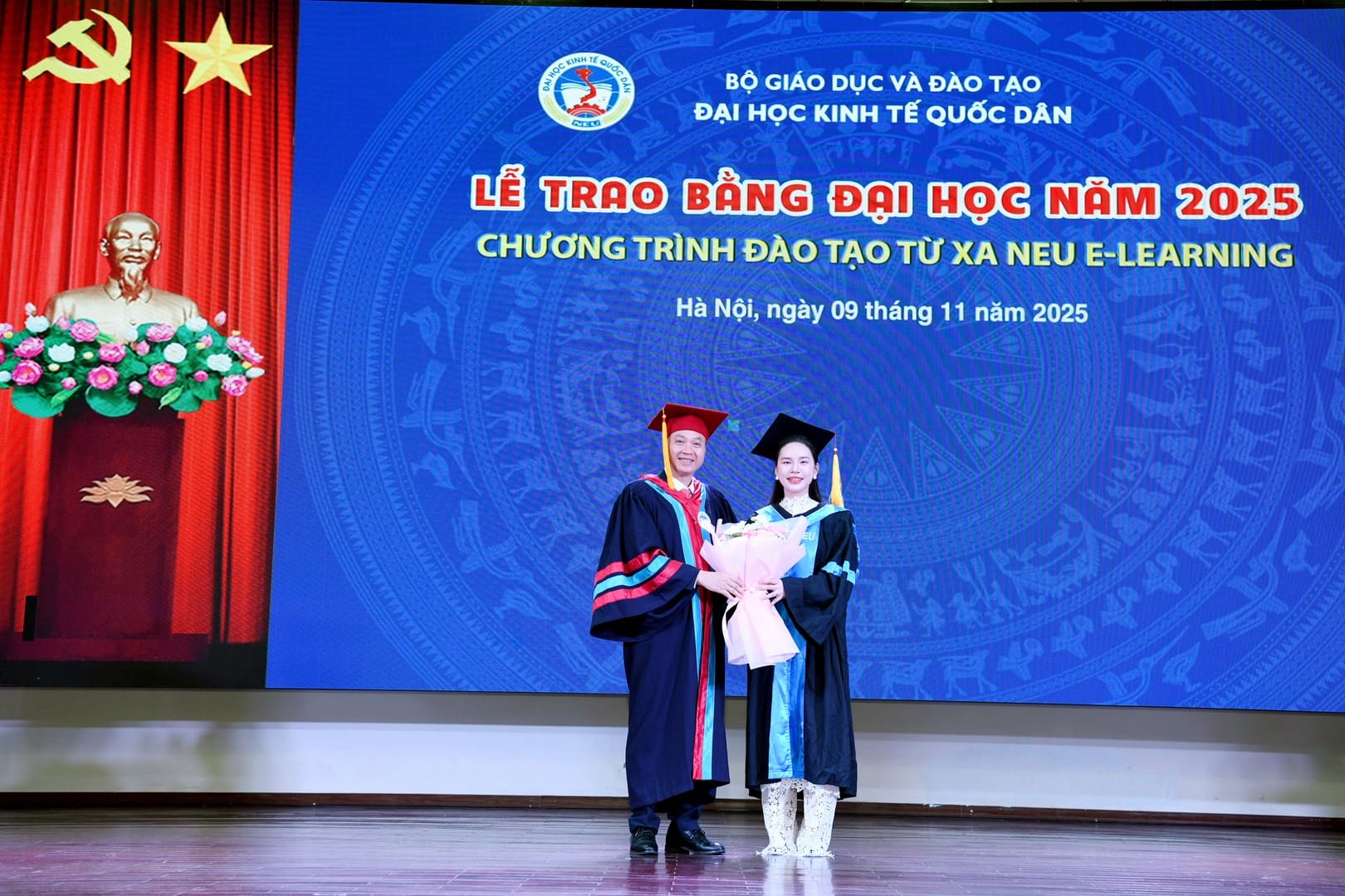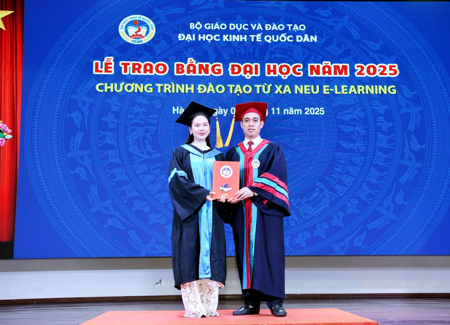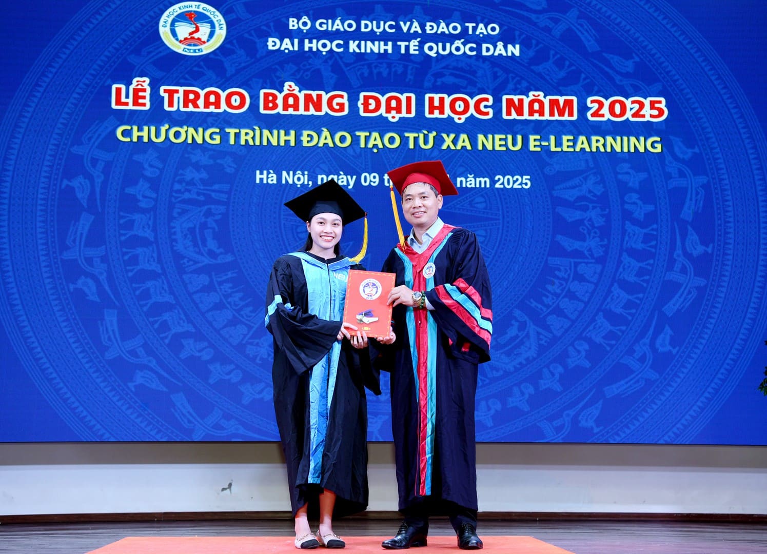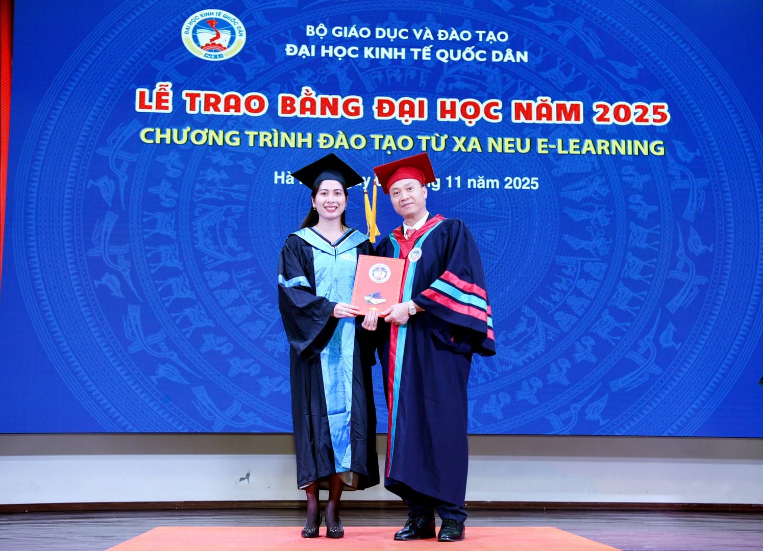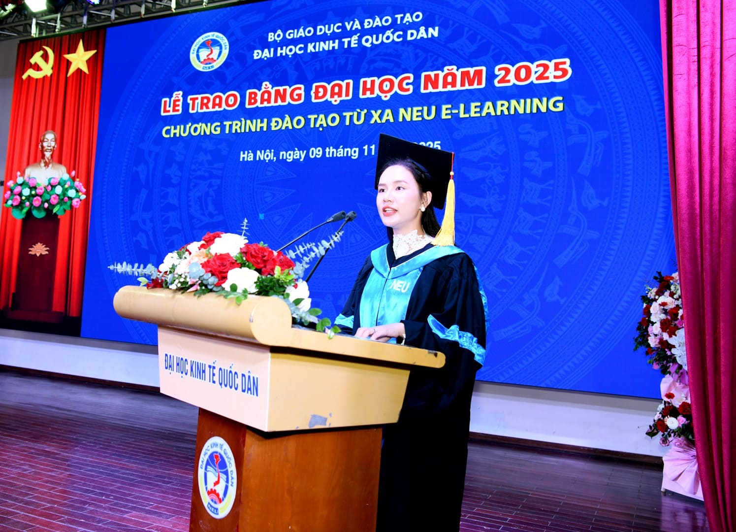 Đại diện cho toàn thể các tân cử nhân Chương trình đào tạo từ xa NEU E-Learning, tân cử nhân Trần Thu Thủy bày tỏ niềm xúc động và tự hào khi được chính thức trở thành cử nhân của Đại học Kinh tế Quốc dân – ngôi trường giàu truyền thống, tiên phong trong đổi mới giáo dục và ứng dụng công nghệ số trong giảng dạy.