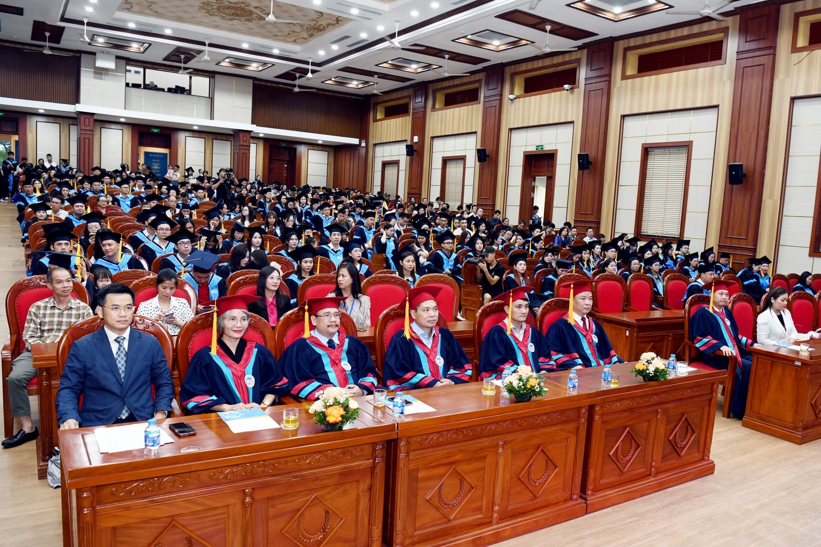 Tân cử nhân và các đại biểu tham dự buổi lễ cùng chụp ảnh lưu niệm